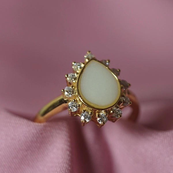 - Forma: Gota rodeada de circonitas brillantes.