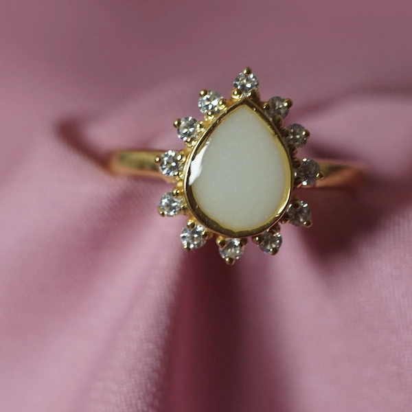 - Piedra central: Resina sólida con tu leche materna tratada artesanalmente.
