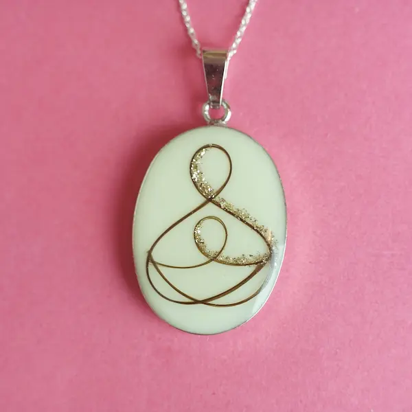 Este colgante tiene la forma de buddha hecha con pelito de bebé, también puede llevar cordón umbilical o colocar el pelito de alguna forma diferente a la de las fotos. Te escribiremos cuando estemos montando tu pedido para saber cómo quieres que lo coloquemos.