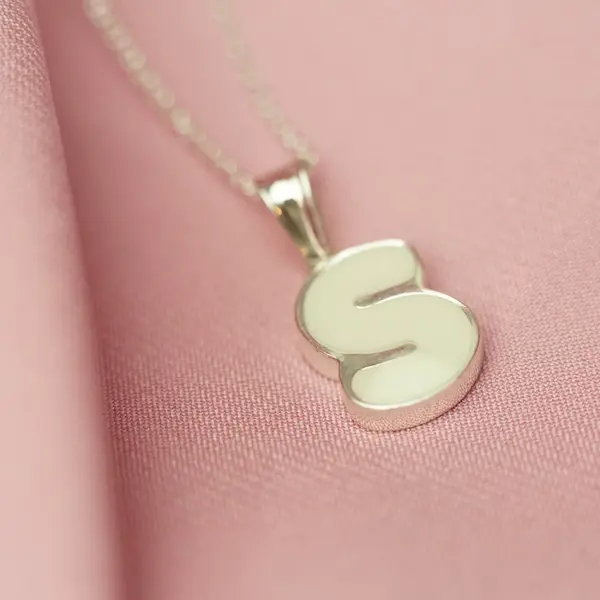 Colgante con la inicial de tu bebé relleno de leche materna.